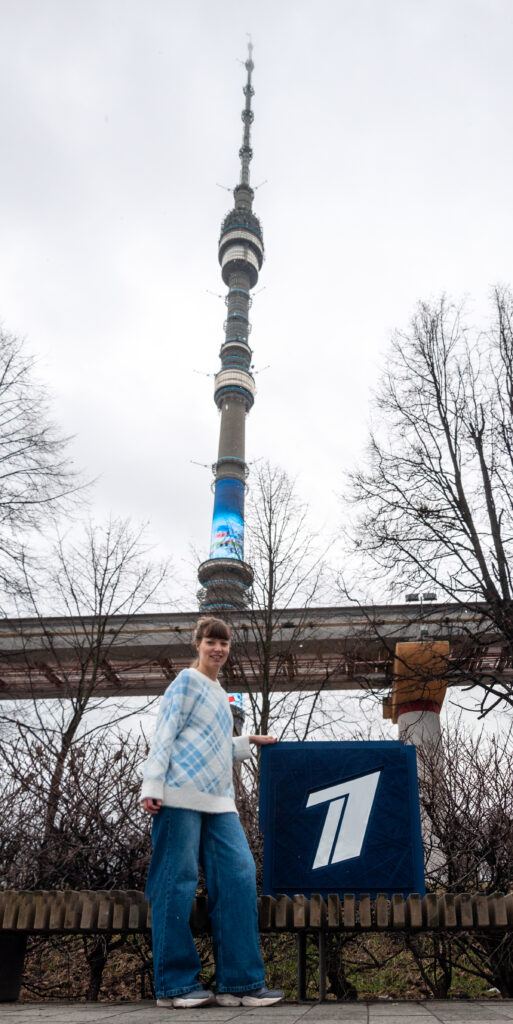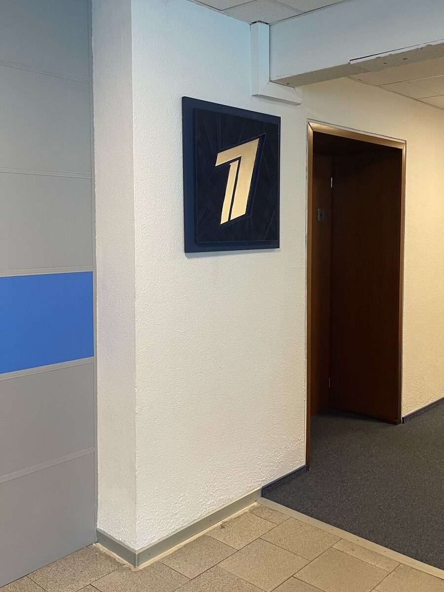 Сейчас работа размещена в Телецентре «Останкино». Логотип в технике стринг-арт органично вписался в интерьер, добавив пространству современный художественный акцент и при этом сохранив узнаваемый корпоративный дух.